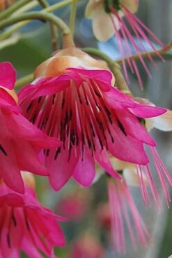 Rhodoleia henryi ‘Scarlet Bells’, commonly called Hong Kong Rose, is one of the most interesting plants we’ve come across in years. Not to be confused with Rhodoleia championii, which isn’t nearly as cold hardy, this species is cold hardy to at least zone 7 and possibly zone 6. Though the dark green evergreen foliage looks somewhat similar to Camellia, the flowers have a distinct look all of their own. From late winter to mid spring clusters of dangling, bell-shaped, vibrant rose-pink to fuchsia-pink flowers are produced in abundance. Truly a site to behold in bloom, this is one of those plants that will have you always looking forward to spring. We suggest planting this rare beauty in part shade as that’s where it looks and performs its best. Morning and/or evening sun and all day filtered sun is fine, but do provide some filtered sun to shade in the afternoon.