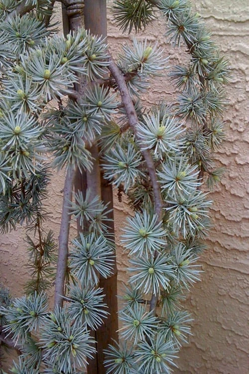 Growing slowly to about 10 to 15 feet tall (or taller with staking) and equally as wide, the Weeping Blue Atlas Cedar is ideal for use as a focal point specimen in sunny areas or as espalier against a an open wall. A fine addition to rock gardens, conifer gardens, wildlife gardens, and Xeriscape gardens (low water needs).